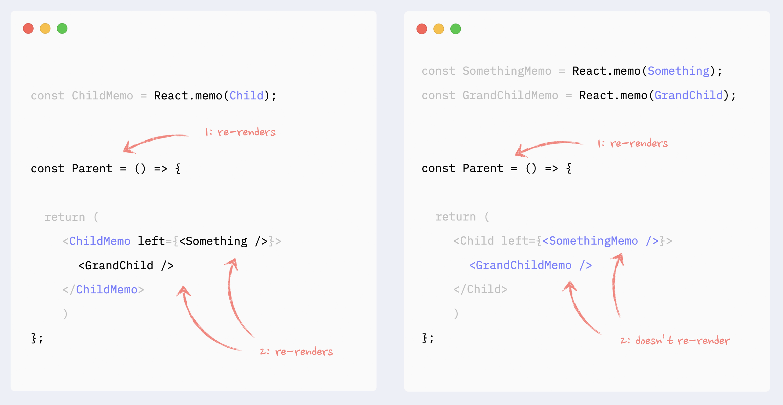 - Read more about children and parents: The mystery of React Element, children, parents and re-renders