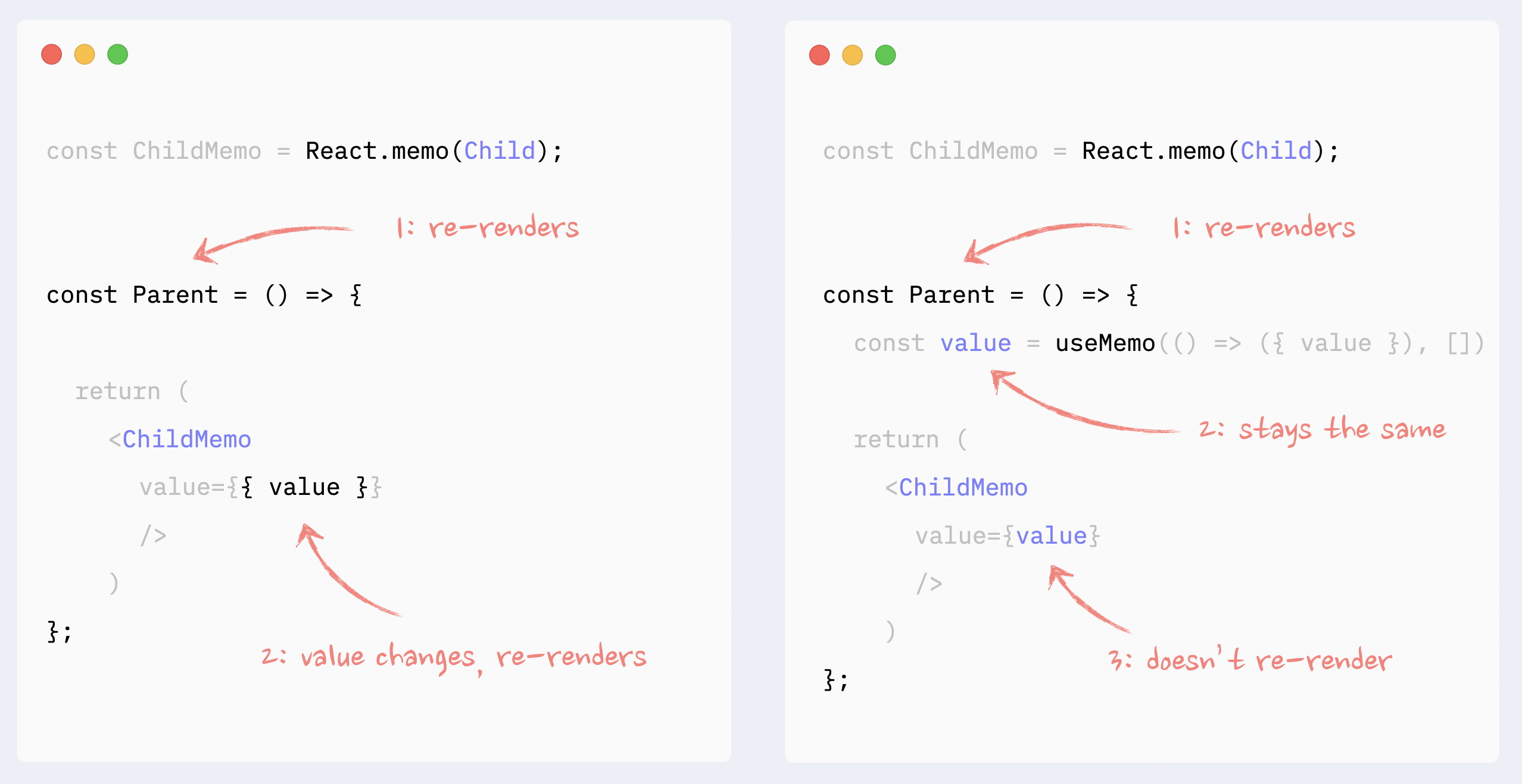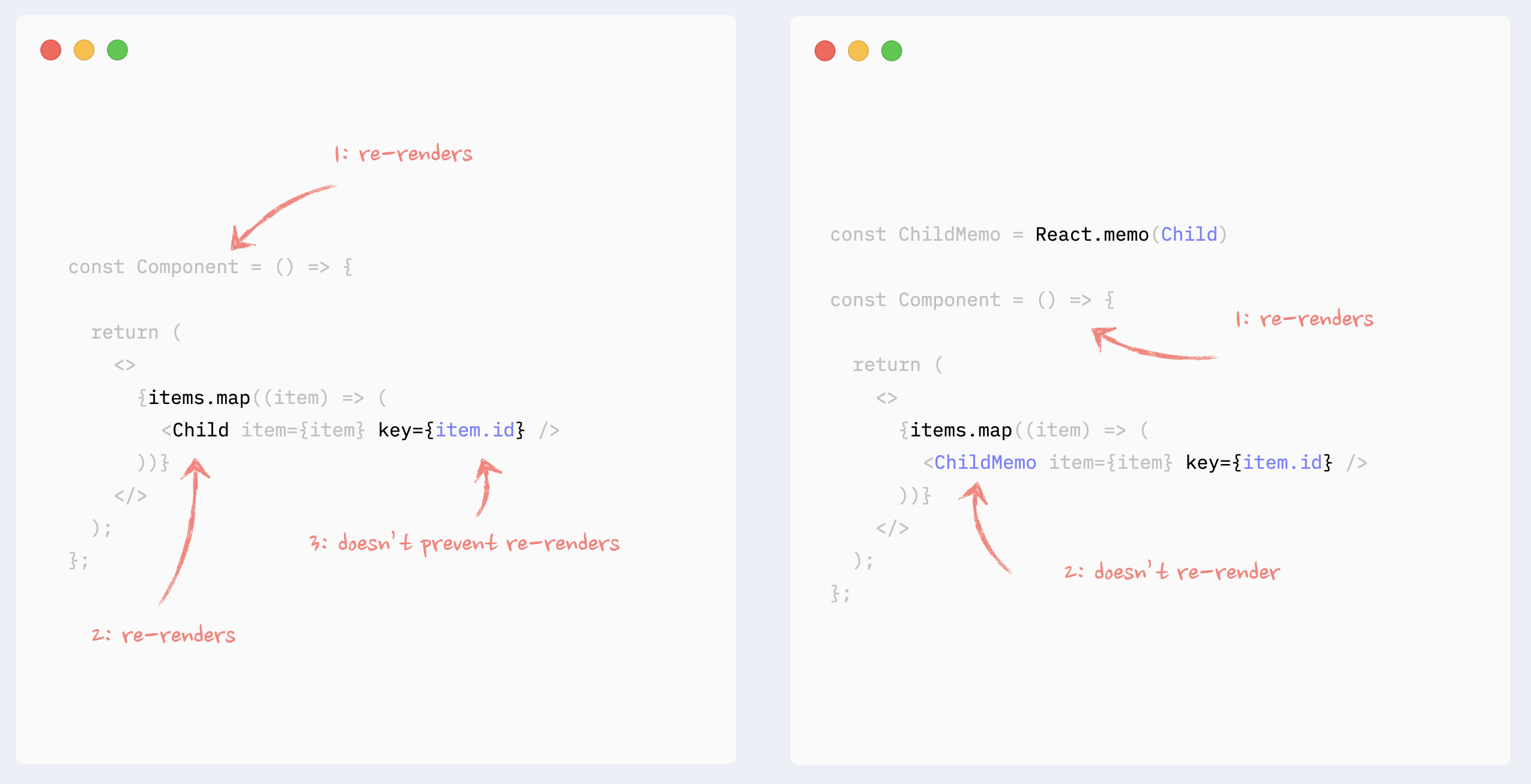 Also includes most important patterns that can help prevent re-renders and a few anti-patterns that lead to unnecessary re-renders and poor performance as a result. Every pattern and antipattern is accompanied by a visual aid and a working code example.